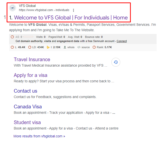 Firstly, search VFS Global on Google and select the highlighted option.